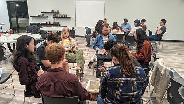 Every Tuesday night during the school year, from 6:45pm-8:30pm, we meet for fellowship, worship, and teaching. We normally choose a book of the Bible to study through together. We meet on the FBC Campus in Room 101.